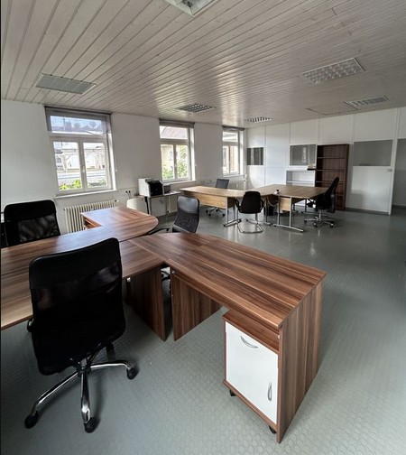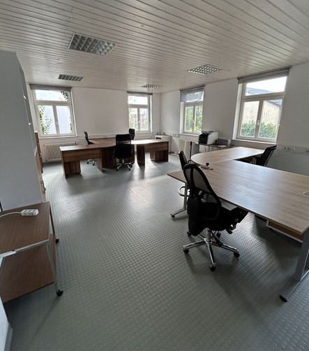 Die Aufteilung ist optimal, Sie haben im Erdgeschoss zwei Räumlichkeiten, gegebenenfalls für Produktion, Empfang oder Besprechung, sowie eine Etage darüber einen sehr großen Raum, wo sie als Bürofläche, Ausstellungsfläche oder Ähnliches nutzen können.